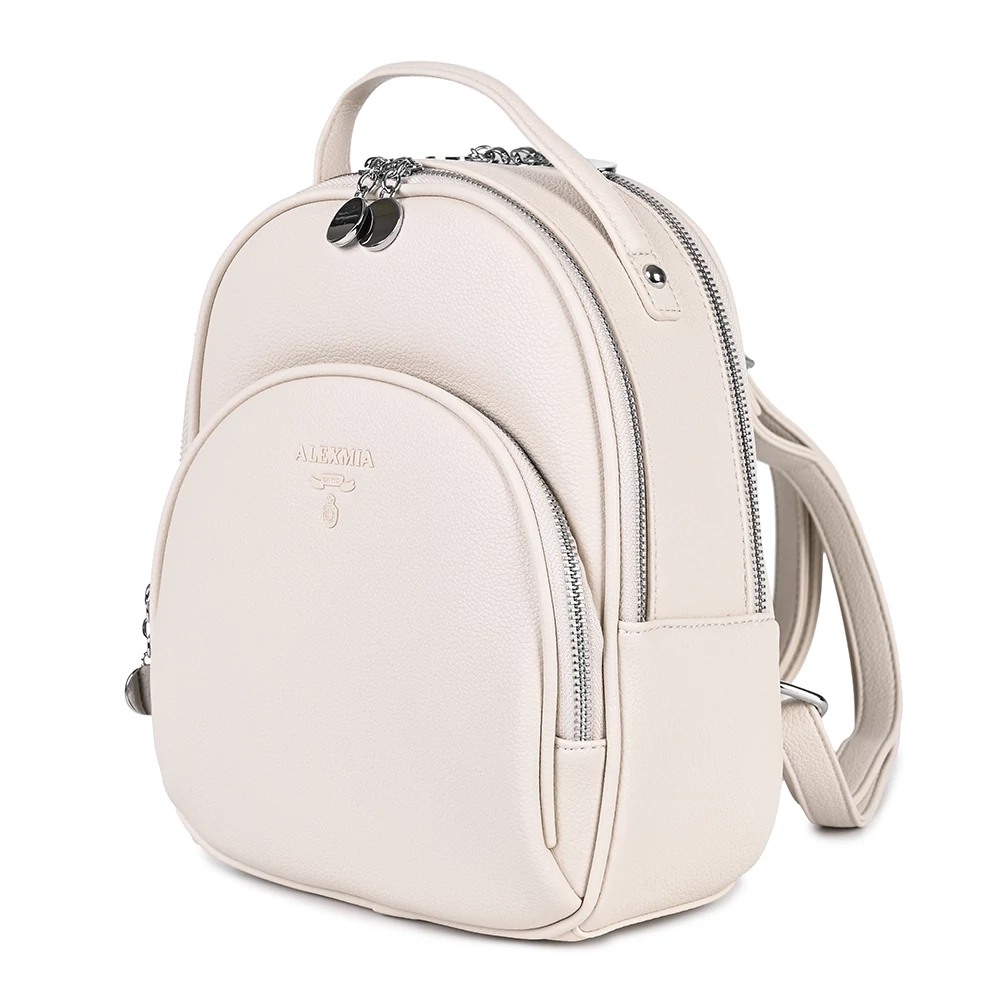 Minimalista stílusú, állítható pántú, közepes méretű hátitáska mindennapi használatra. Elől egy közepesméretű cipzáras zseb található. Két fő rekeszében tágas pakoló hely található, egyikben pedig egy kis méretű cipzáras zseb is kialakításra került. Hátul is kapott helyet egy további cipzáras rekesz.