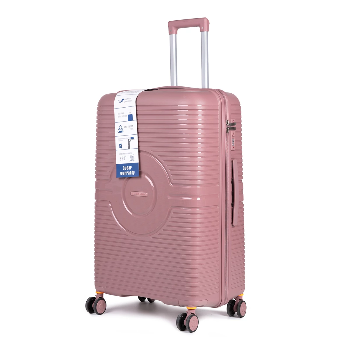 Teleszkópos húzószerkezettel ellátott gurulós bőrönd. A bőrönd kerekei 360 fokban elforognak (kivétel a három kerekű bőröndök esetében) így biztosítva a maximális utazási élményt és kényelmet. Kézi fogantyú található a bőrönd tetején és oldalán is a könnyű használhatóság érdekében. Cipzáras záródású bőrönd. Belső terében két oldalra pakolhatunk, ahol cipzáras és gumis lefogató pántok fixálják ruháinkat. A bőröndön található egy számzáras szerkezet, értékeink megvédését szolgálva, mely beállításáról bővebb tájékoztatót lejjebb lapozva olvashat. A cipzárjai akár külön lakattal is lezárhatóak. (a lakat nem tartozék).