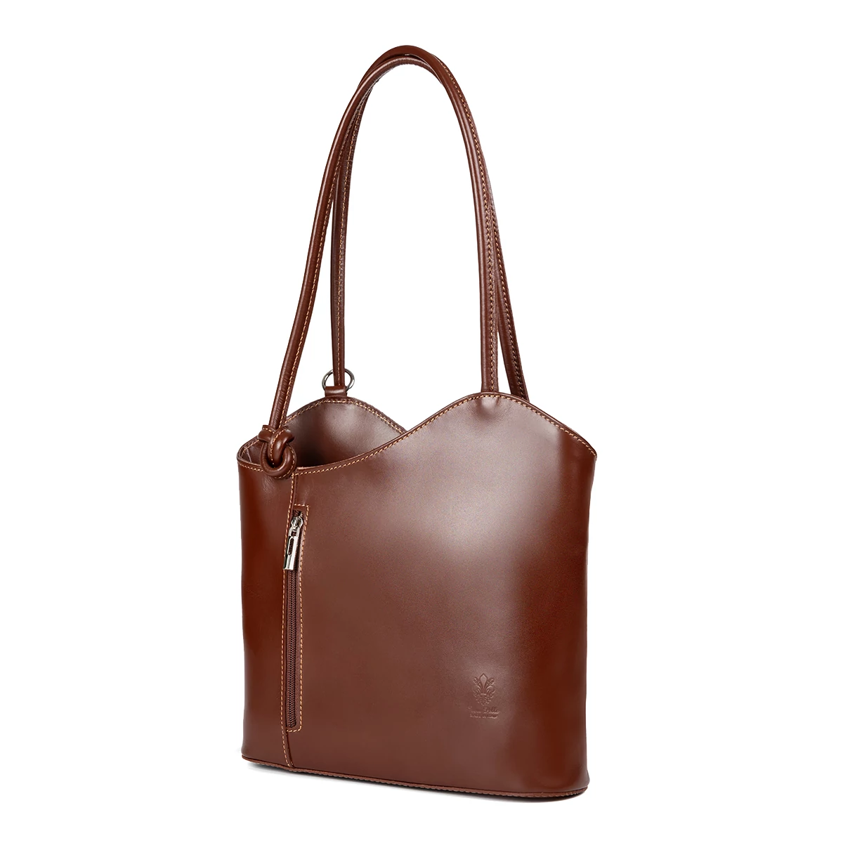 Valódi bőrtáska, melynek egyedi kinézete és kétféle funkciója még értékesebbé teszi. Válltáskaként és hátizsákként is hordható. Keményített anyagból készült. Első oldalán és a hátsón is található egy apró cipzáras zseb, mindkét oldalon függőlegesen. Nagy zsebét is cipzárral nyithatjuk, belső tere két részre van osztva, egy apró kis zsebet is rejt a táska mélye.