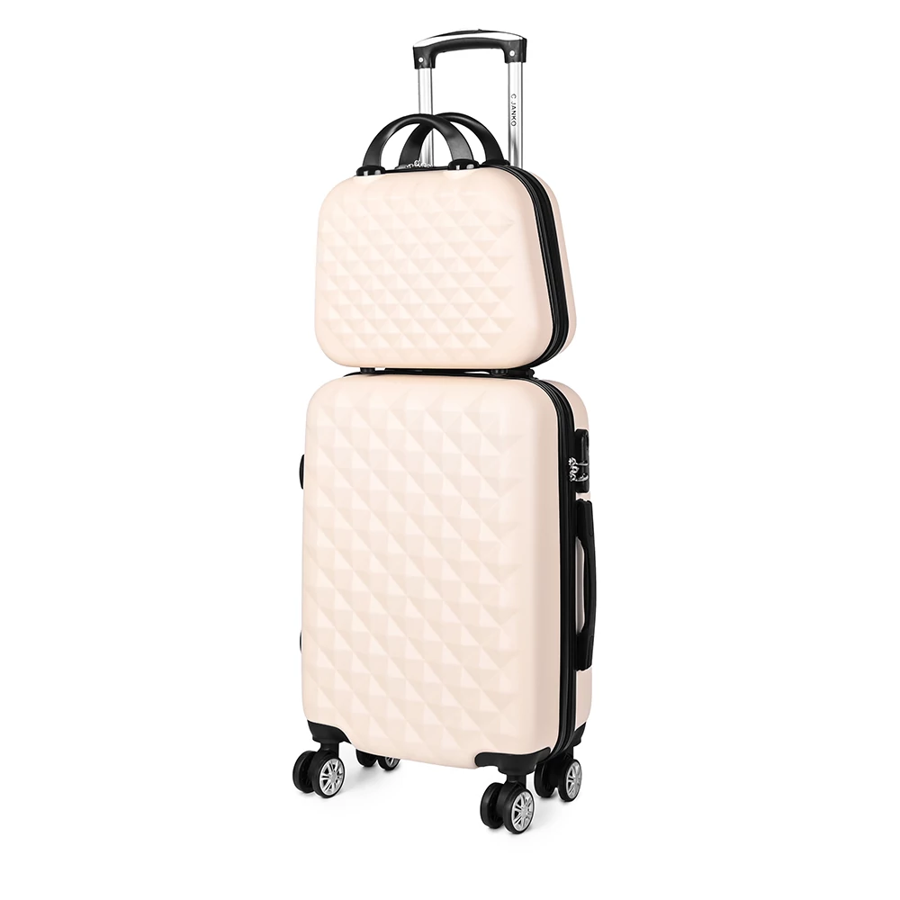 Bézs Kis Méretű Négykerekű Csendes Bőrönd Utazótáskával