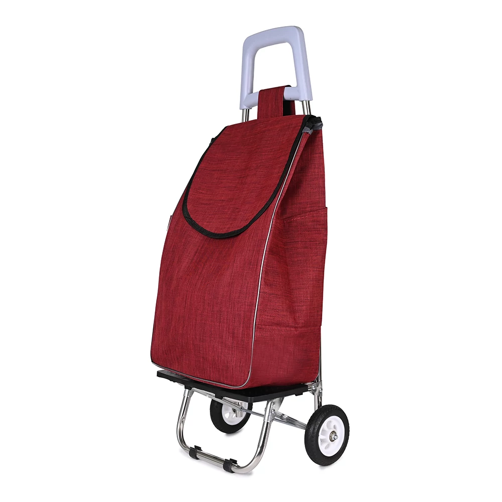 Ez a bevásárlókocsi praktikus társ a mindennapi vásárlásokhoz, amely megkönnyíti a nehéz szatyrok cipelését. Alumínium váza tartós és stabil, a könnyen gördülő kerekek pedig kényelmes használatot biztosítanak egyenetlen terepen is. A táska nagy kapacitással rendelkezik, így bőven elfér benne a bevásárlás teljes tartalma. A felső rész zsinórral összehúzható és fedéllel zárható, így a benne lévő dolgok biztonságban vannak. A hátoldalán egy cipzáras zseb található, amely ideális a kisebb értékek, kulcs vagy pénztárca elkülönített tárolására, illetve két oldalsó nyitott zseb. Praktikus és könnyen kezelhető választás mindazoknak, akik szeretnék kényelmesebbé tenni a bevásárlást.