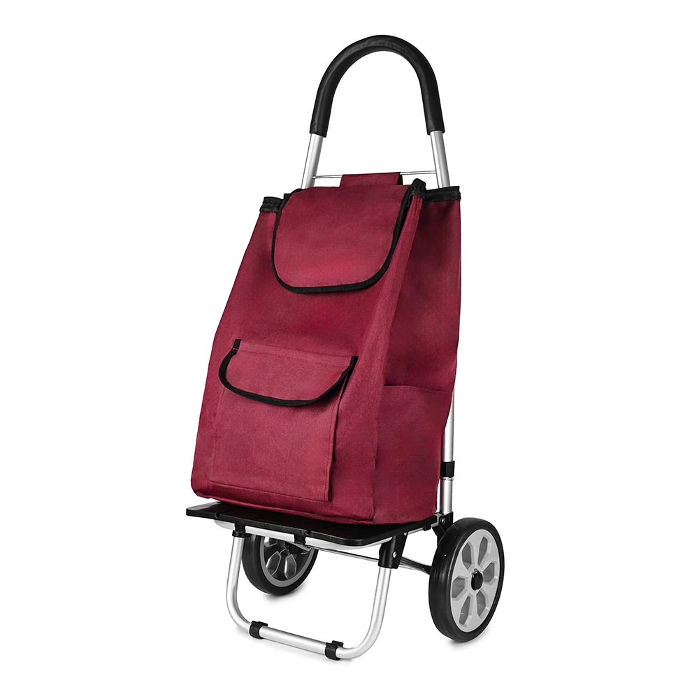 Bordó Kétkerekű Összecsukható Bevásárlókocsi