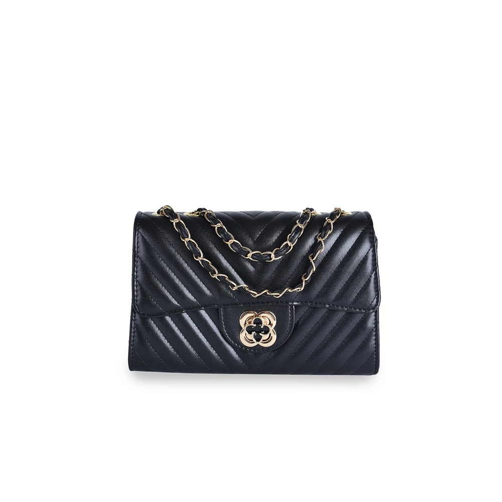 Közepes méretű, nőies és elegáns megjelenésű válltáska, amely igazán feldobja a napjaidat, hiszen gyönyörű aranyozott színű részletekkel lett díszítve. Elején egy feltűnő, virág alakú csatt található, melynek segítségével nyitható és zárható a táska. Belseje tágas, kétlégterű, melyet egy cipzáros fal választ ketté, ahova szintén pakolhatunk, így könnyedén rendszerezhetjük tárgyainkat. Tökéletes választás alkalmakra, elegánsabb eseményekre, de egy hétköznapi outfitet is különlegessé tehet.