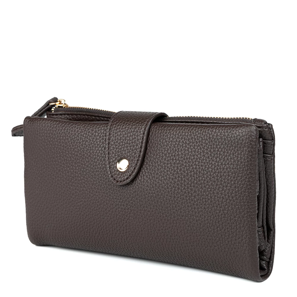 Kávébarna Nagyméretű Sokzsebes Csatos Pénztárca