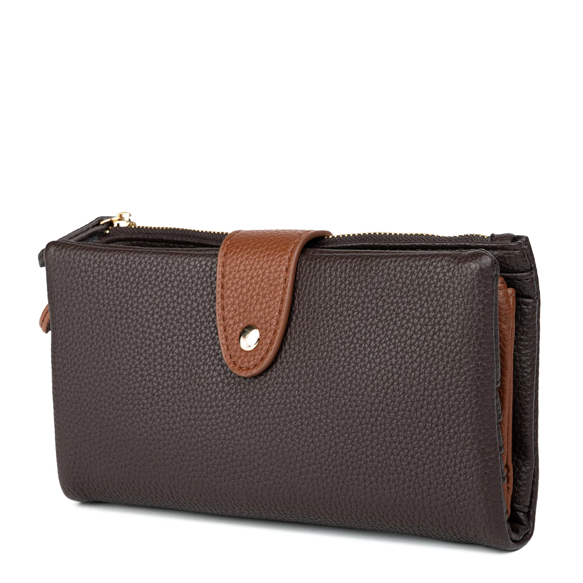 Kávébarna Nagyméretű Sokzsebes Csatos Pénztárca