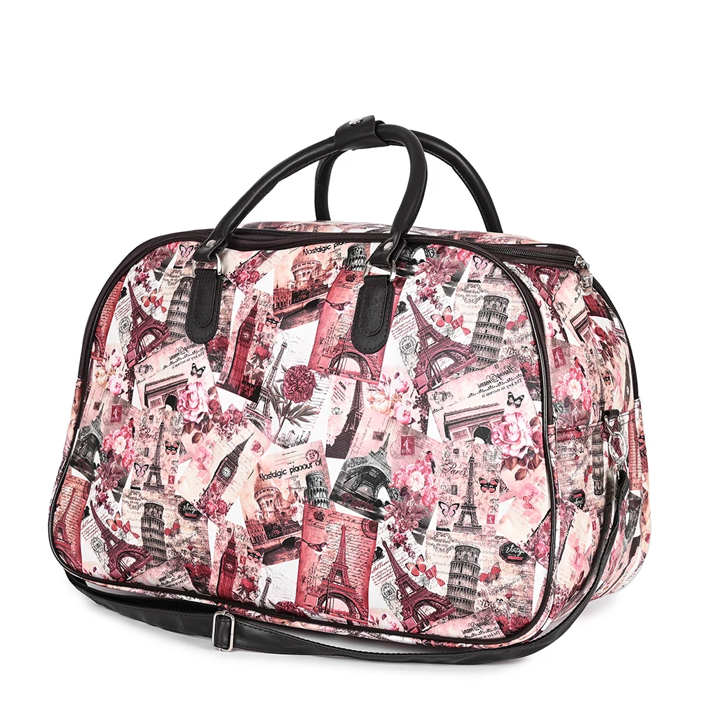 Ez a stílusos és praktikus közepes méretű utazótáska tökéletes társad lesz a rövidebb utazások során. Külső borítását egyedi minták díszítik, melyek frissességet és eleganciát sugároznak. Az utazótáska belseje egyterű, így könnyedén pakolhatsz bele, legyen szó ruhákról, piperecikkekről vagy egyéb személyes tárgyakról. Az utazótáska belső részének kialakítása lehetővé teszi, hogy mindent rendezetten tarts.