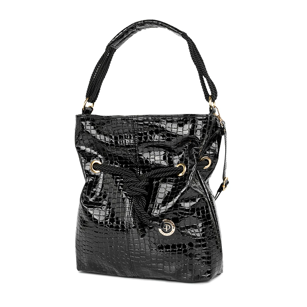 Prestige Fekete Krokodilbőr Mintás Lakk Válltáska