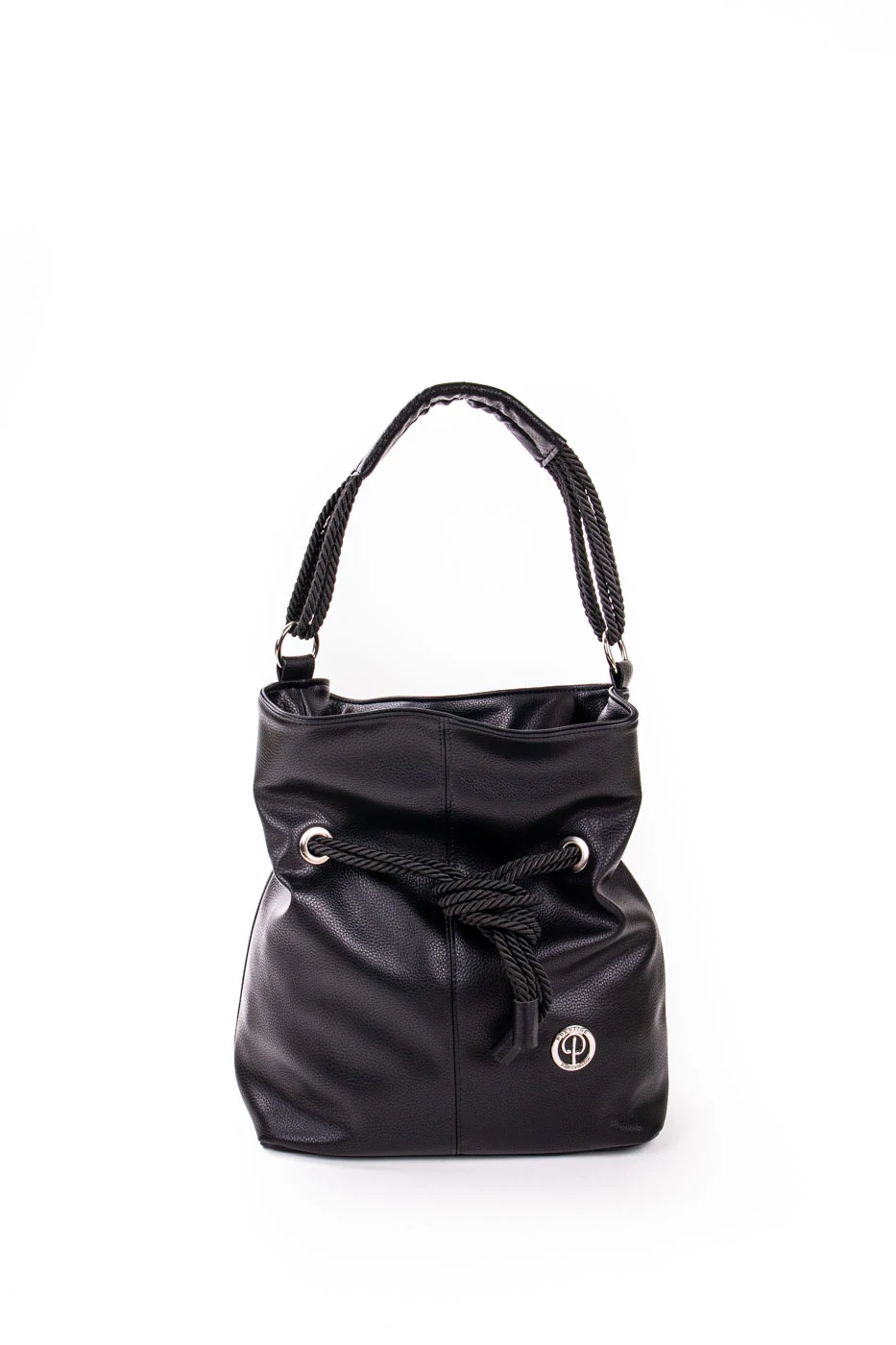 Elegáns női rostbőr táska kötéldíszítéssel. Óriási egylégterű belseje akár egy kabátot is képes elnyelni. Hátulján egy cipzáras, belsejében pedig egy nyitott és szintén egy cipzáras zsebet kapott helyet a könnyebb rendszerezés érdekében. Felcsatolható pántjának köszönhetően oldaltáskaként is viselhető. Belseje cipzárral zárható.
