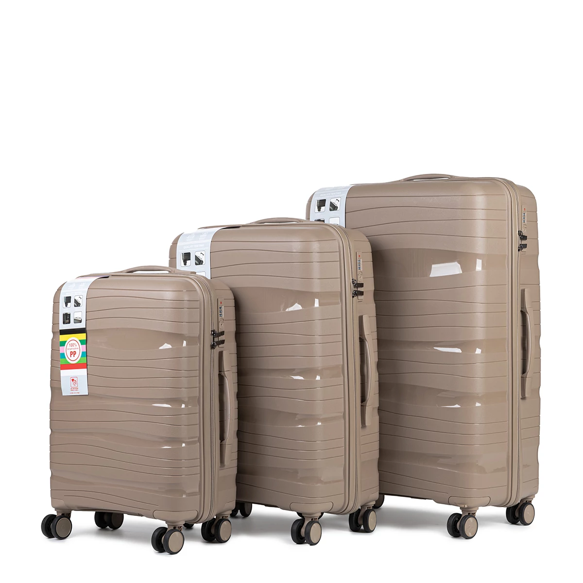 Strapabíró Sötétbézs Keményfalú Polipropilén Bőrönd Szett