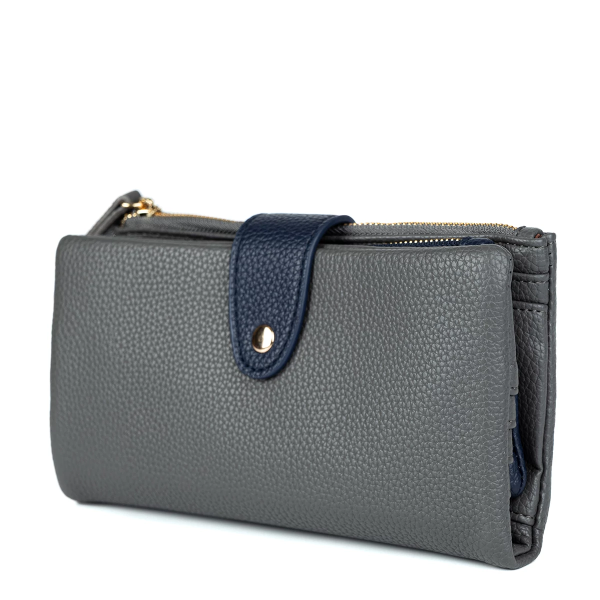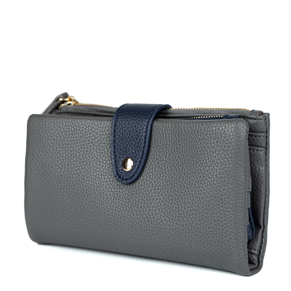 Szürke Nagyméretű Sokzsebes Csatos Pénztárca