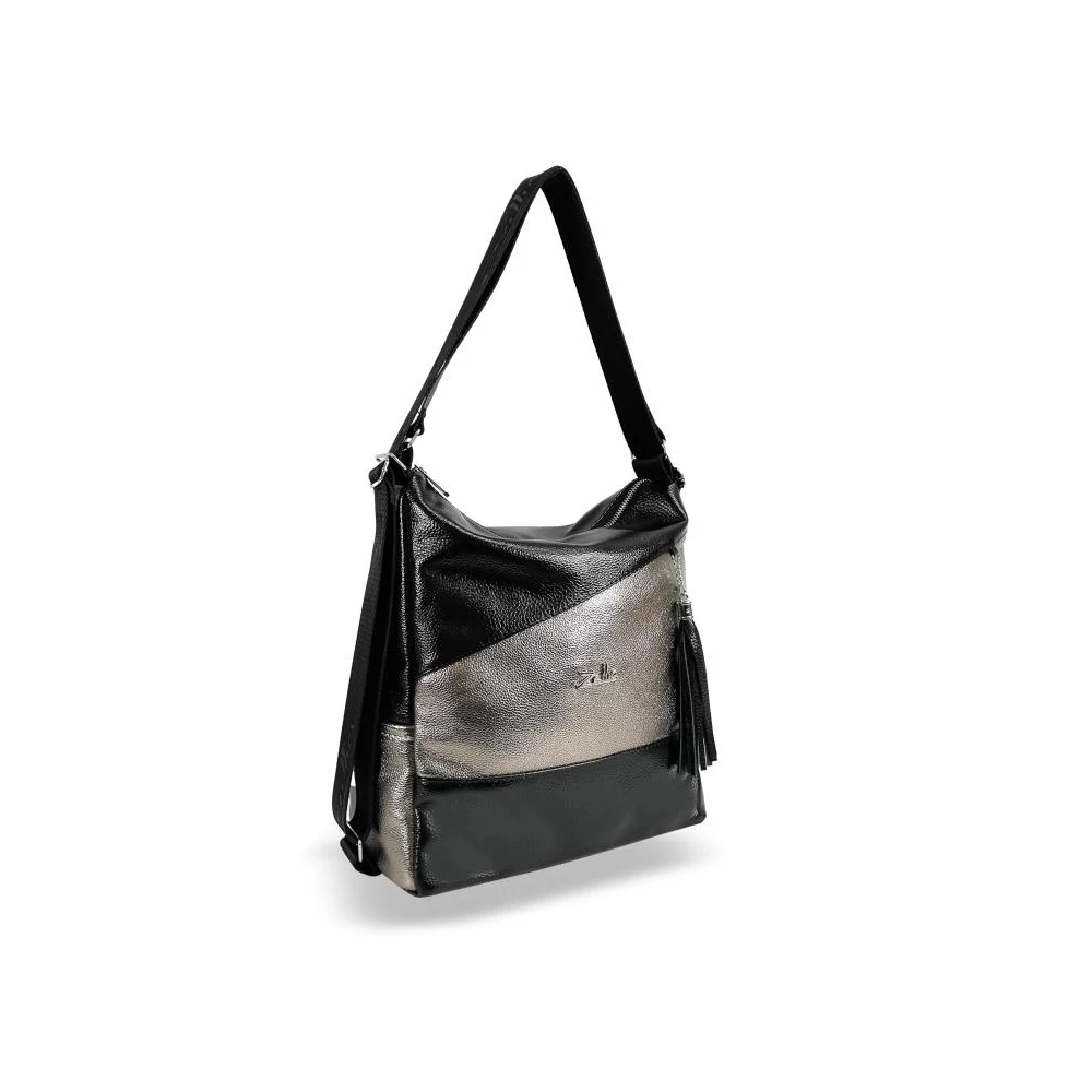 R&J Fekete Valódi Bőr Női Hátizsák És Válltáska