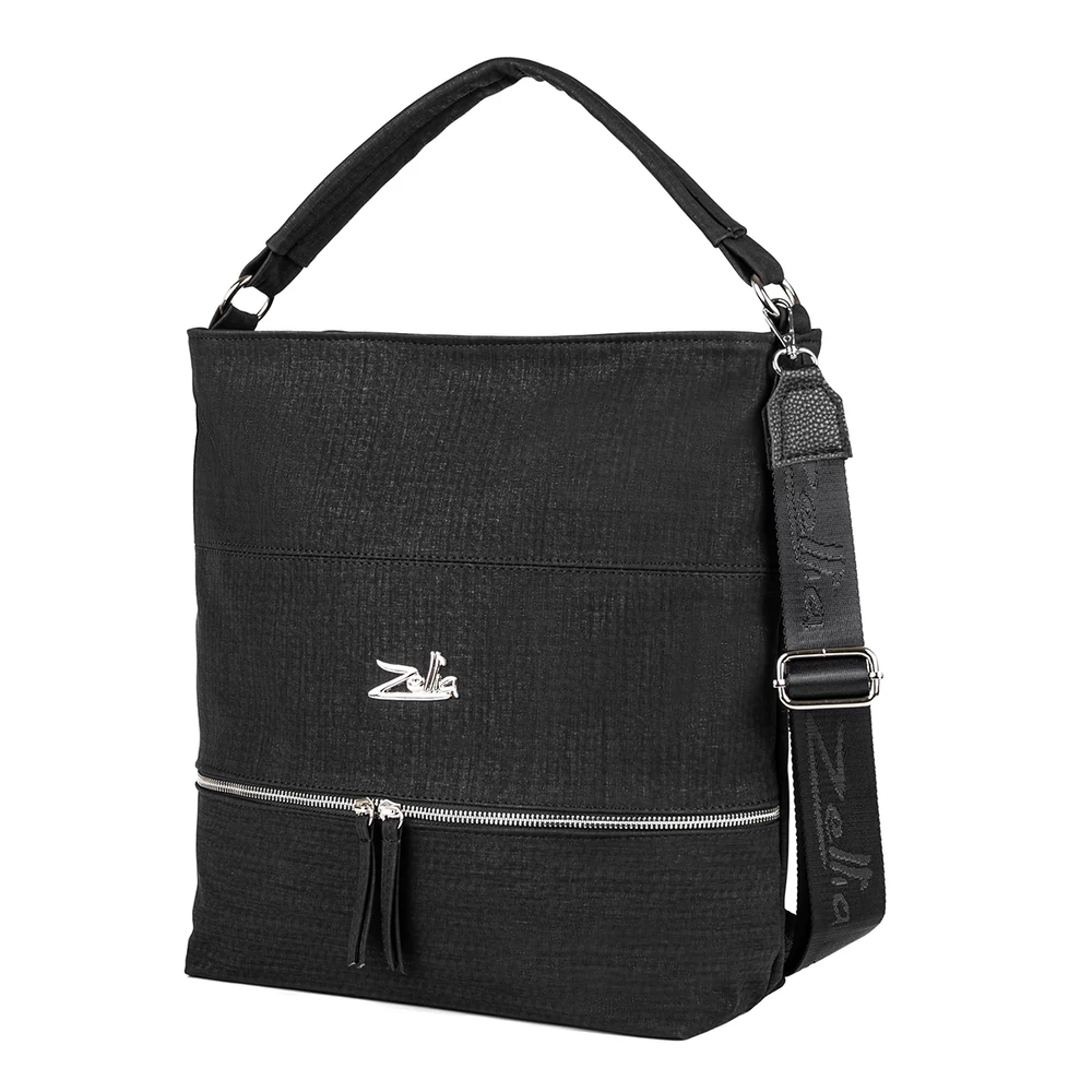Zellia Fekete Csillámos Szövet Hatású Női Válltáska