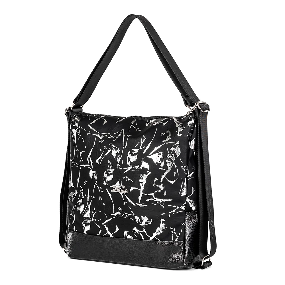 Zellia Fekete-Ezüst Színű Mintás Váll- és Hátitáska