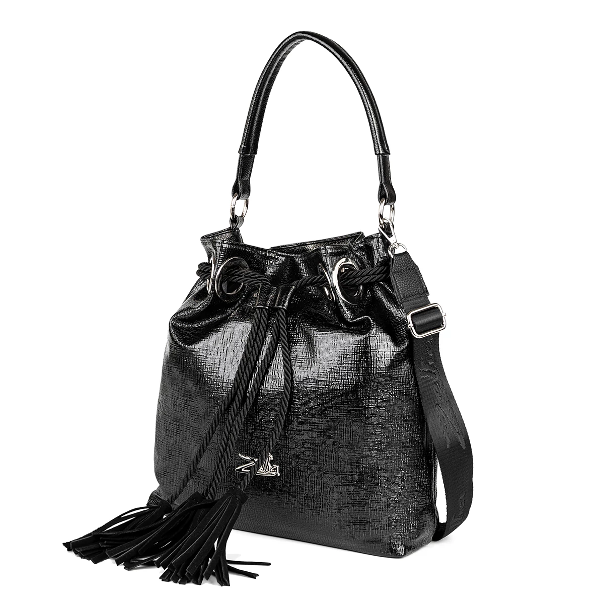 Zellia Fekete Fényes Kockás Mintás Női Válltáska