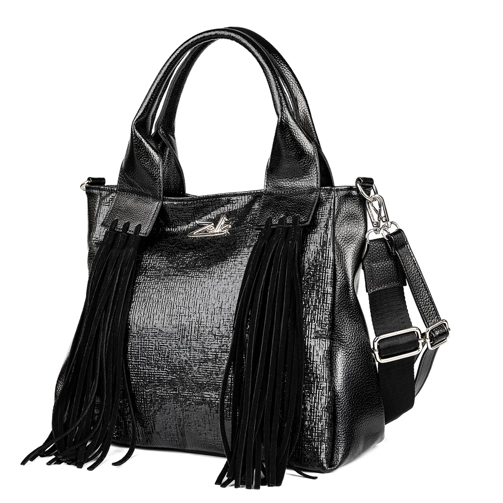 Zellia Fekete Kocka Mintás Női Válltáska Rojtokkal