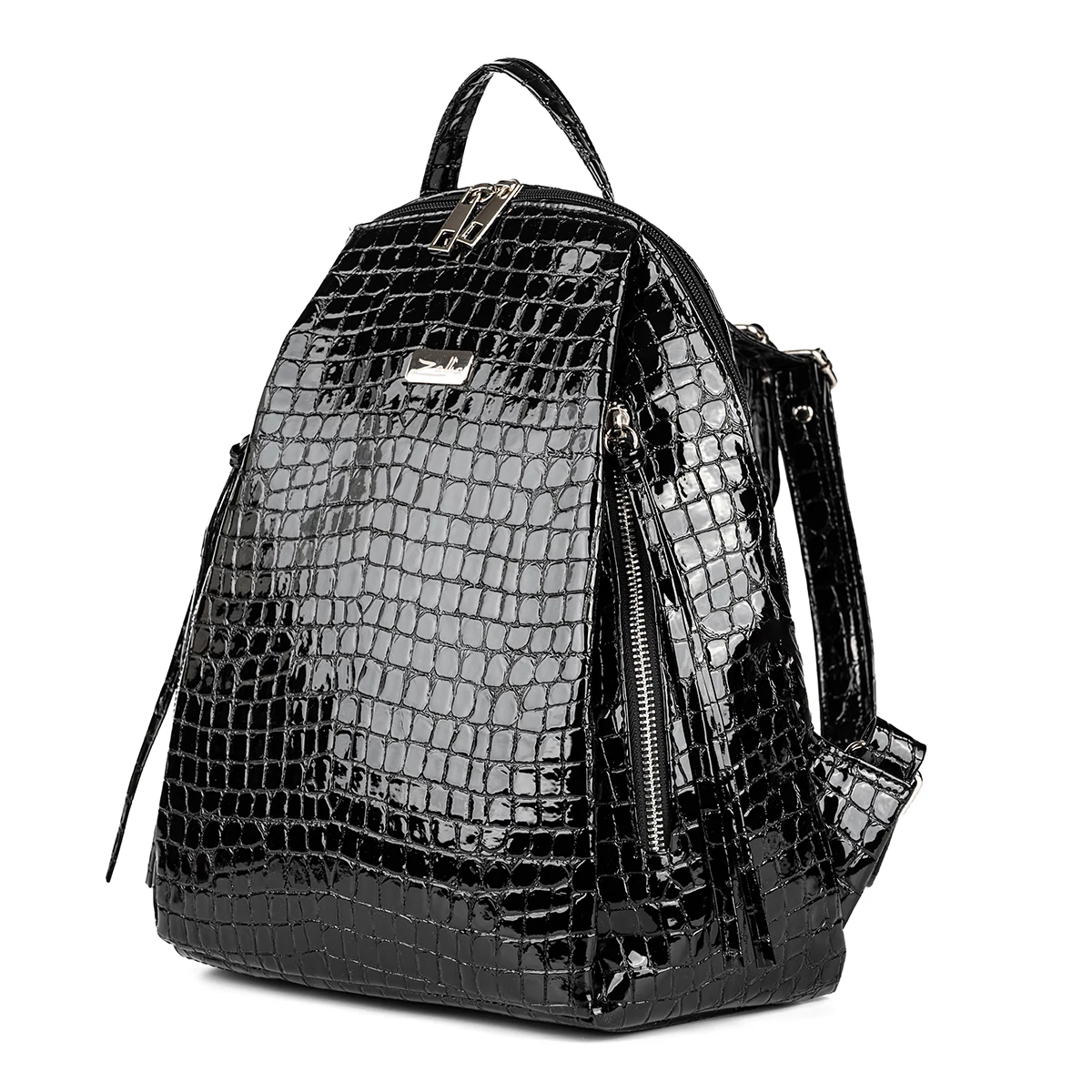 Zellia Fekete Krokodilbőr Mintás Lakk Női Hátitáska