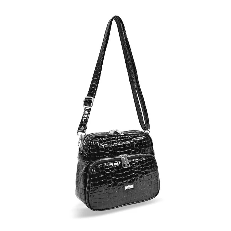 Zellia Fekete Krokodilbőr Mintás Női Lakk Oldaltáska